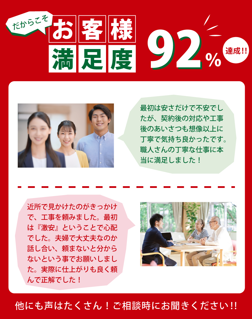 そして、「早く工事をしないと大変だ!」と不安を煽りお客様の顔色を見ながら、見積りから20万円引き等、あの手この手で駆け引きをしています。